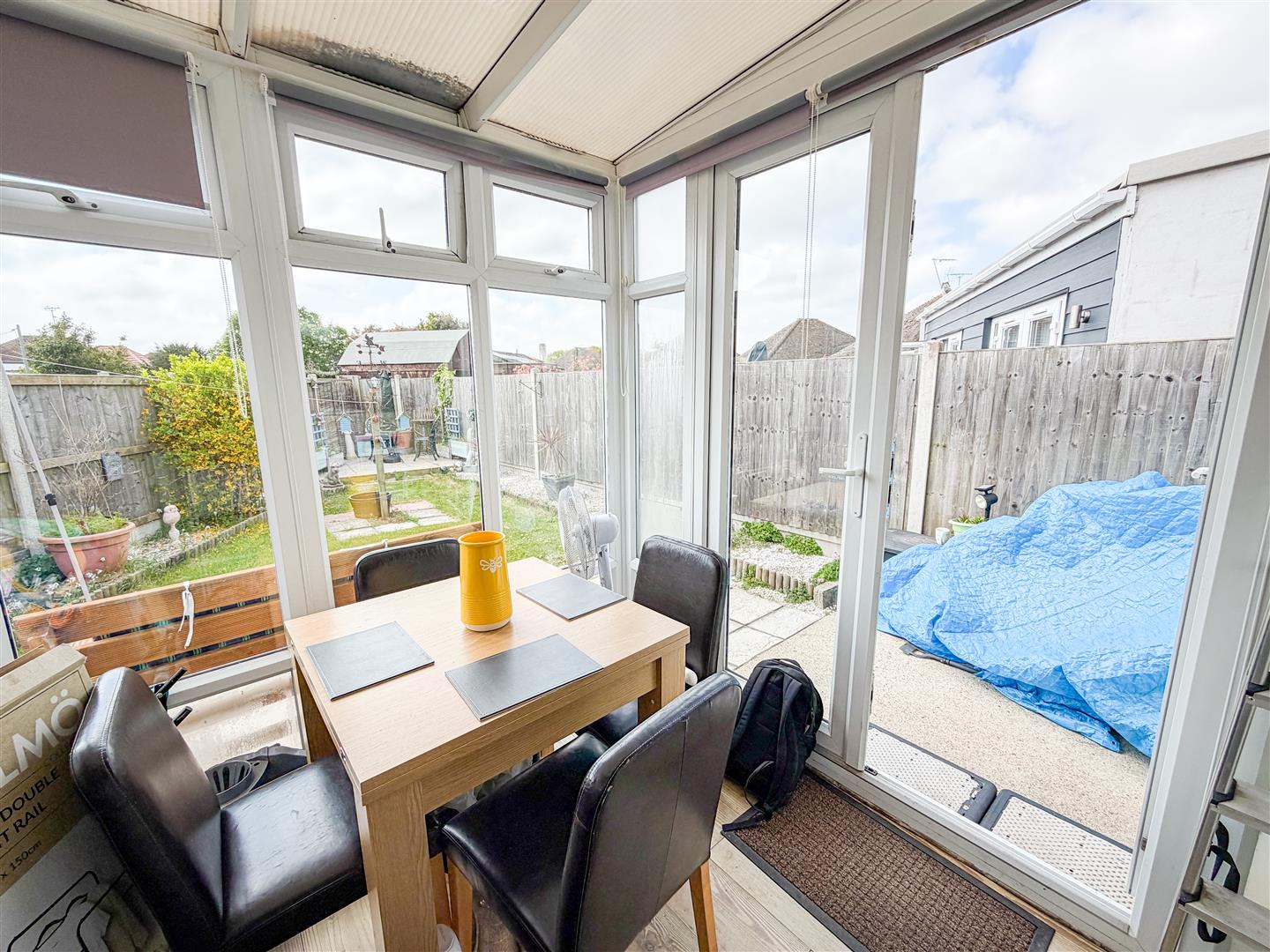 Double glazed windows to sides and rear overlooking garden. Poly carbonate roof. Wood effect flooring. Double glazed door leading to rear garden.