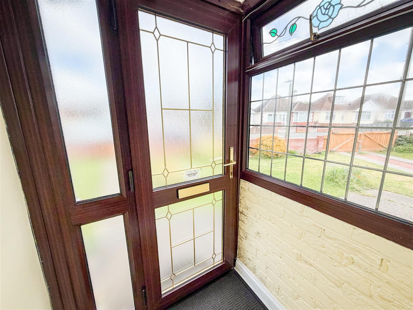 Double glazed entrance door with double glazed side panel to side to entrance porch.