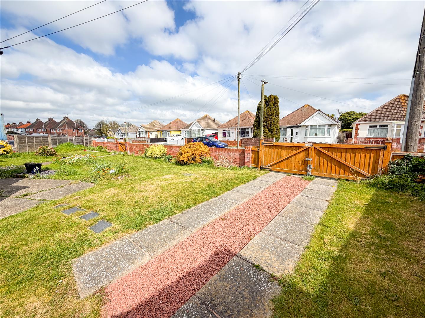 The property is positioned within a corner plot position with spacious front garden being mainly laid to lawn with an array of flower, shrub and shingle borders. Part enclosed by brick wall and pedestrian double gates. Hard standing area providing off street parking. Gate giving side pedestrian access to outside rear garden.