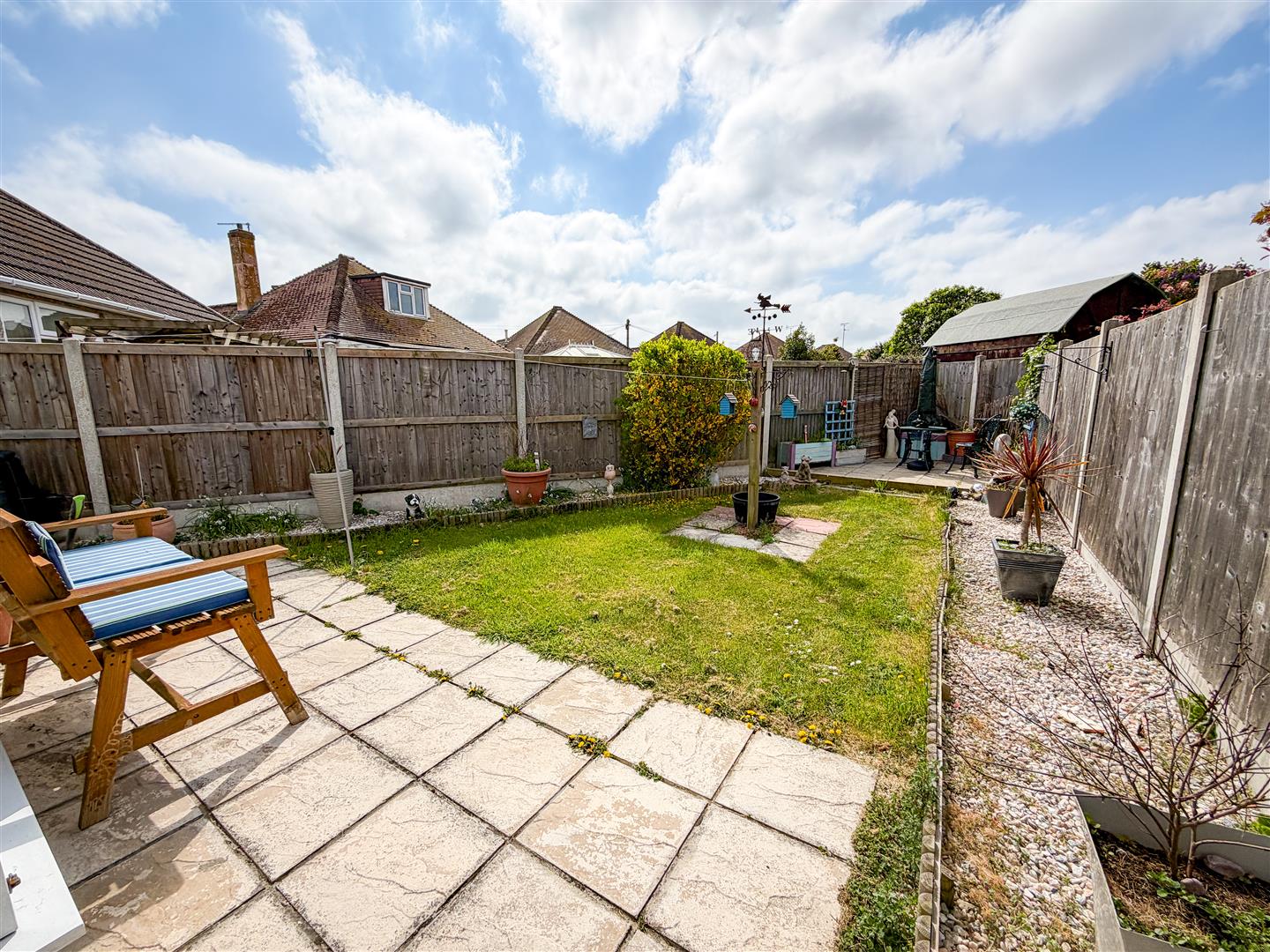Approx 32' max. rear garden which tapers to a point. Garden is laid to lawn with a paved patio area. Shingled borders. Wooden decked patio area. Enclosed by panelled fencing.